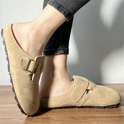 2024夏の新しいシンプルな先のとがった屋外スリッパ通気性のあるフラットとリベット浅い口リア空の猫のドキュメントシューズ